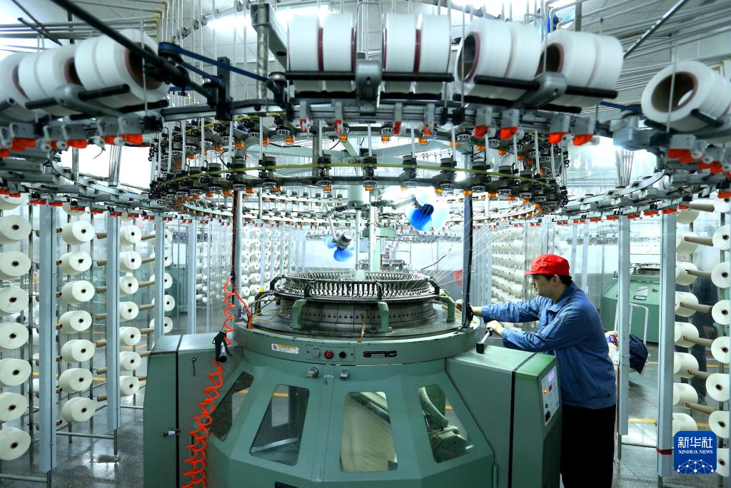 12月31日,在湖南省衡阳市白沙洲工业园,衡阳天锦纺织有限公司员工在生产线上作业。