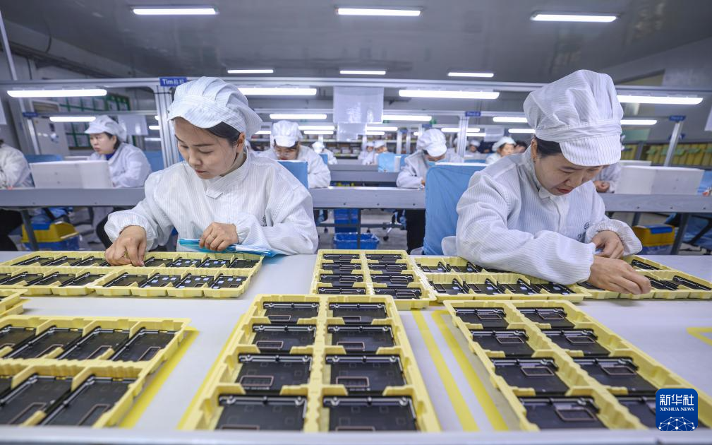 12月31日,在山东省荣成市好运角旅游度假区一家外资电子企业的车间,工人赶制出口国外的电子产品订单。