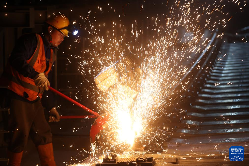 12月29日,江苏省扬州市杨庙镇一家机械制造企业的工人在进行打磨作业。