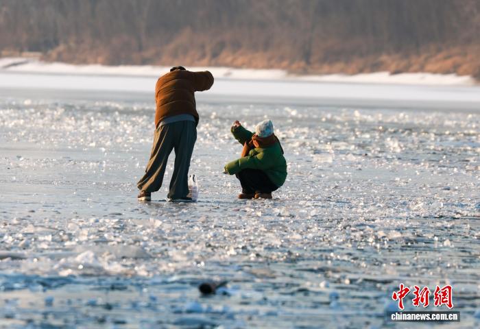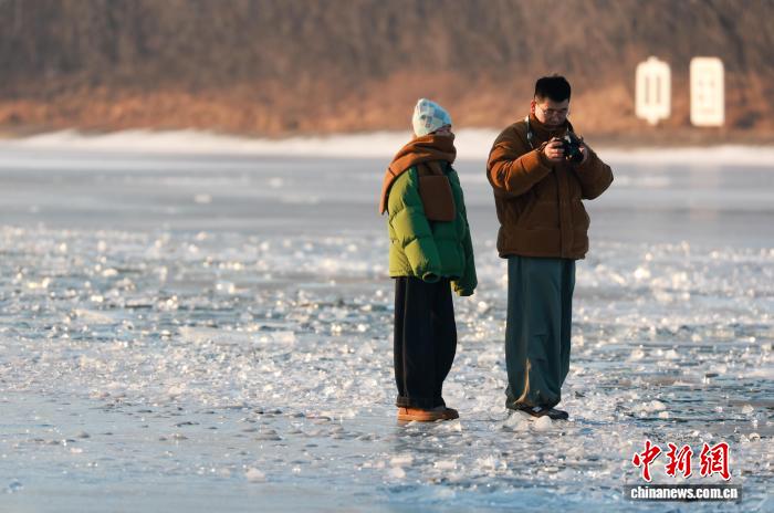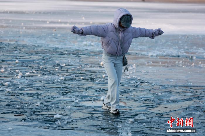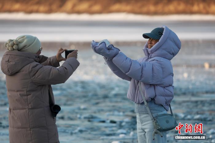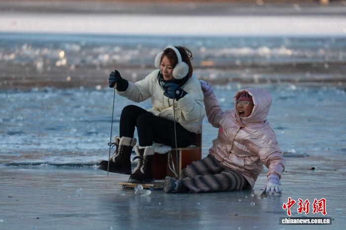 1月4日,沈阳市民在浑河沈阳段的冰河上尽情驰骋,享受的独特乐趣,勾勒出一幅充满活力的冬日画卷。图为市民在浑河上拍照中新社记者于海洋 摄