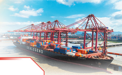 浙江宁波舟山港开通首条中欧北极集装箱快航航线后,货轮在装卸货物。新华社发