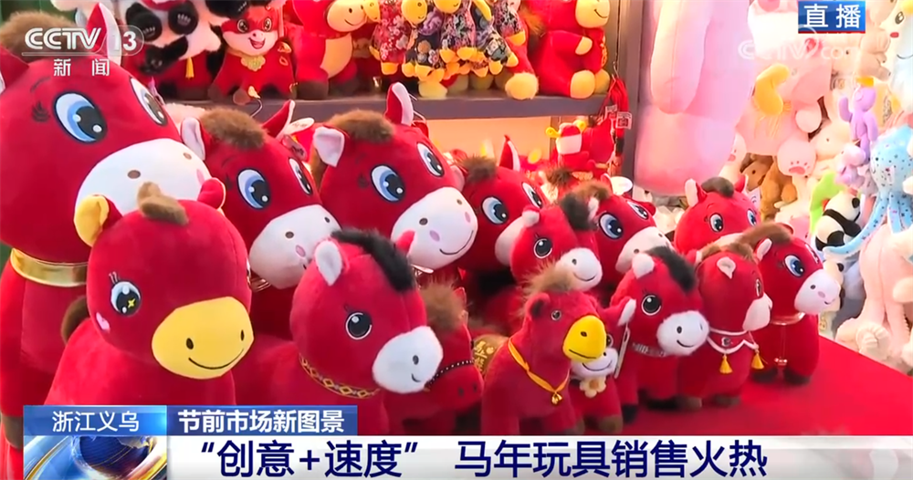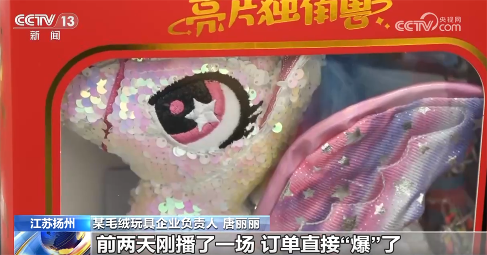 江苏扬州某毛绒玩具企业负责人唐丽丽:我们也发现马年的产品跟往年比起来真的更热销一点。比如我们最近在做线上直播,前两天刚播了一场,订单直接“爆”了。像这个经典款“飞马”一场直播能出几千单,所以仓库一直忙着打包马年产品。