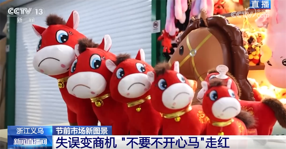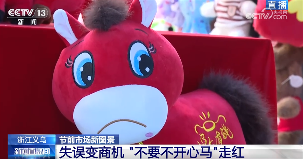 大家仔细看,在这一堆玩偶里,哪个小家伙最特别?来,镜头拉近,没错,就是它!这个看上去有些“委屈”的小家伙,它就是这几天横扫各大社交媒体热搜,被称为新年第一匹“黑马”文创的“哭哭马”,因为生产线上一个美丽的“失误”,您看,它的嘴角被缝反了,向下撇着,瞬间变成了一张写满故事、委屈巴巴的“哭哭脸”。而买到“哭哭马”的网友把希望换货的聊天记录和图片发到了短视频平台上,结果一下子戳中了大家的笑点和共鸣。网友们纷纷说,看到它,觉得“快乐不会消失,只会转移”;还给它起了个新名字,叫“不要不开心马”,就是这种带着幽默和温暖的解读,让这款原本的“瑕疵品”瞬间引爆了一场抢购热潮。