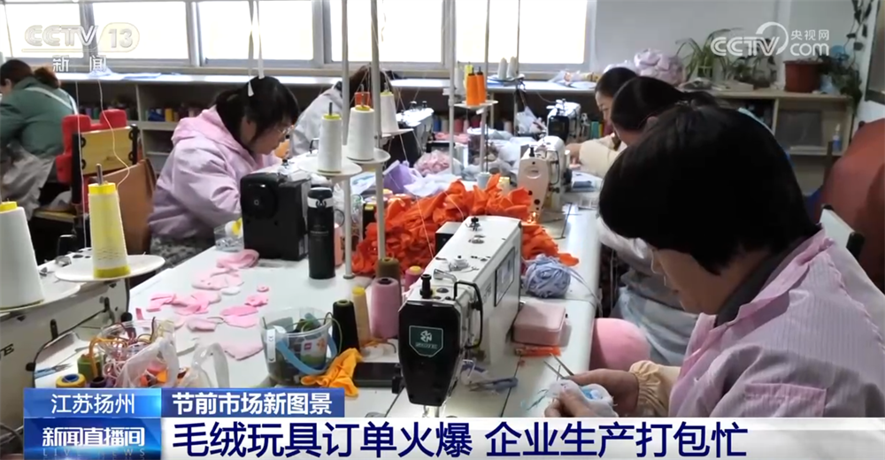 这段时间,同样忙碌的还有江苏扬州的毛绒玩具企业,他们也正开足马力生产,加紧赶制新春订单。