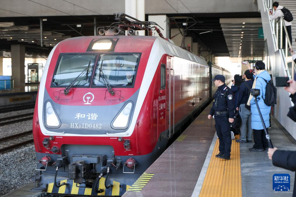 1月14日,火车迷在上海火车站送别Z100次列车。