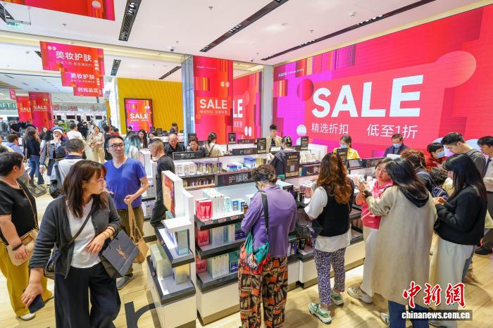 图为元旦假期,cdf海口国际免税城迎来购物热潮,众多游客前来选购心仪商品。中新网记者 骆云飞 摄