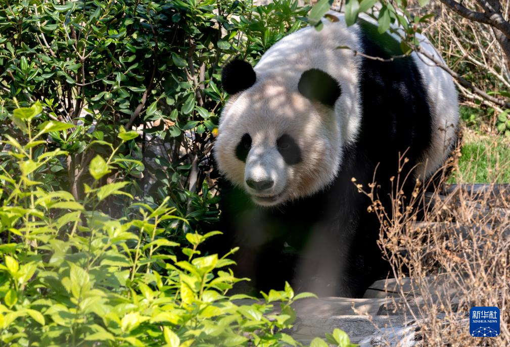 1月17日,大熊猫“荣耀”在户外玩耍。