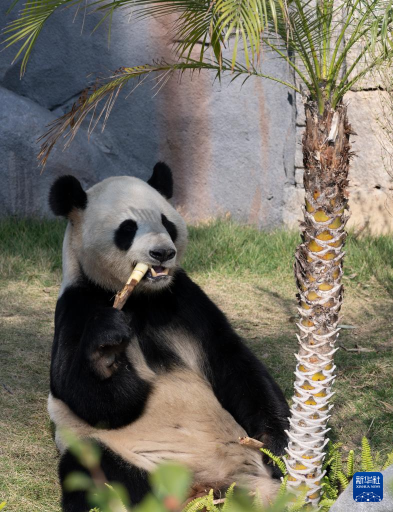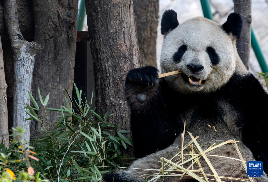 1月17日,大熊猫“晶亮”在吃竹子。