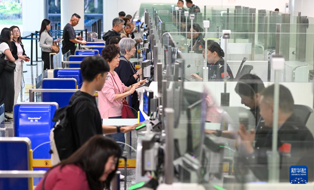 1月17日,入境旅客在海口美兰边检站办理边检手续。