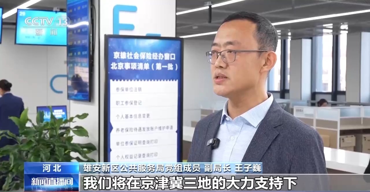 雄安新区公共服务局党组成员 副局长王子巍:下一步,我们将在京津冀三地的大力支持下,常态化联动北京、河北的人社部门,上门办理参保登记,雄安一卡通等服务。