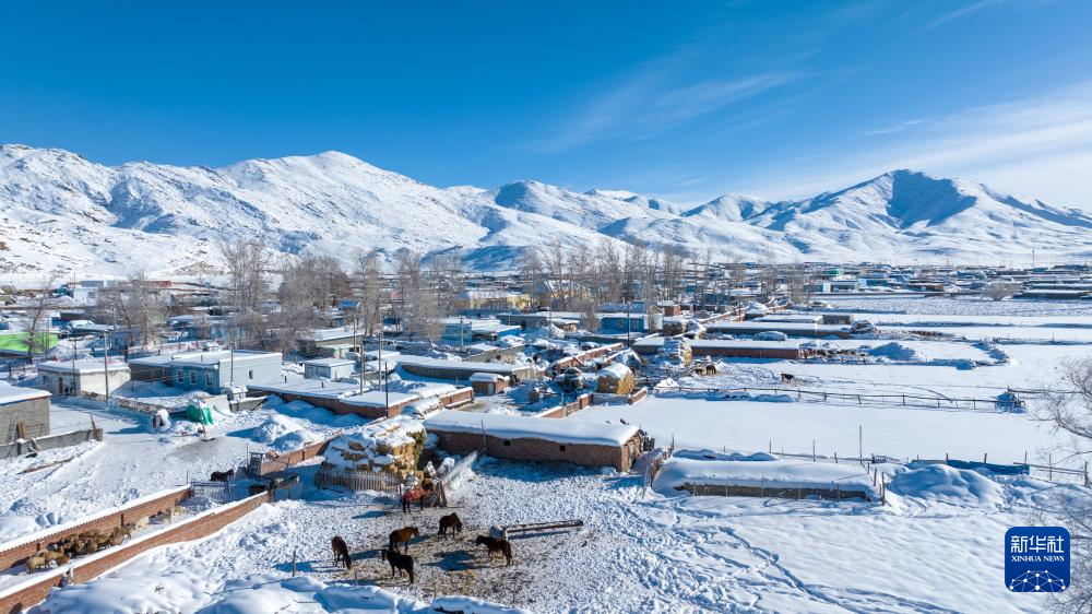 这是1月16日拍摄的新疆阿勒泰地区富蕴县吐尔洪乡的村庄(无人机照片)。
