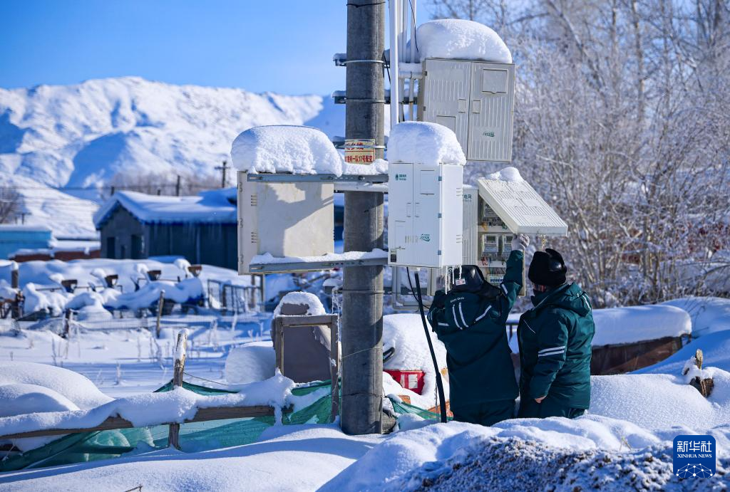 在新疆阿勒泰地区富蕴县吐尔洪乡,供电所员工对乡村线路开展特巡(1月16日摄)。