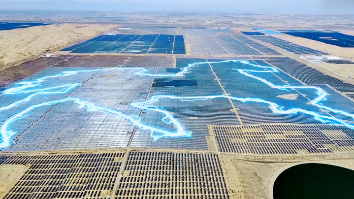 库布其沙漠,曾被称为“死亡之海”。如今,联合国环境规划署赞誉其为“全球治沙样本”。在达拉特旗光伏基地,约19万块光伏板组成的“骏马”图案驰骋沙海,整个基地的年发电量约20亿度。这片曾经的沙漠腹地,如今实现了清洁能源生产与生态修复的共赢。