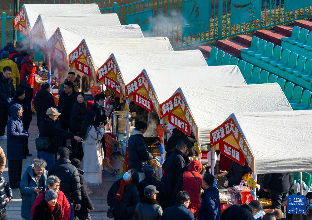 1月31日,游客在2026溱湖湾冬捕活动现场参观溱味鱼鲜市集(无人机照片)。