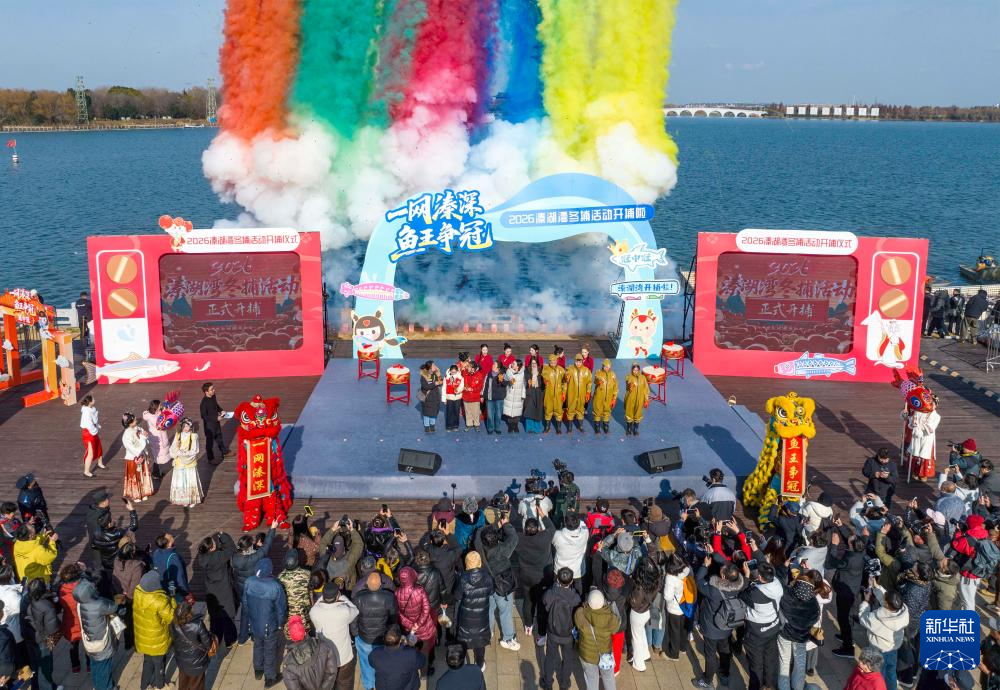 1月31日,2026溱湖湾冬捕活动在江苏省泰州市姜堰区溱湖湾举办,渔民们在溱湖水域开展冬捕作业,湖区水域呈现出一派人欢鱼跃的丰收景象。
