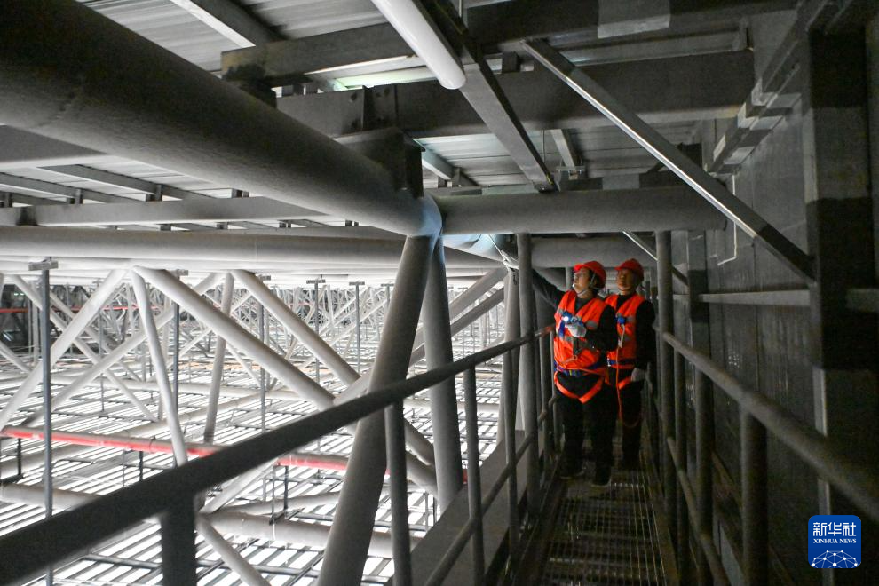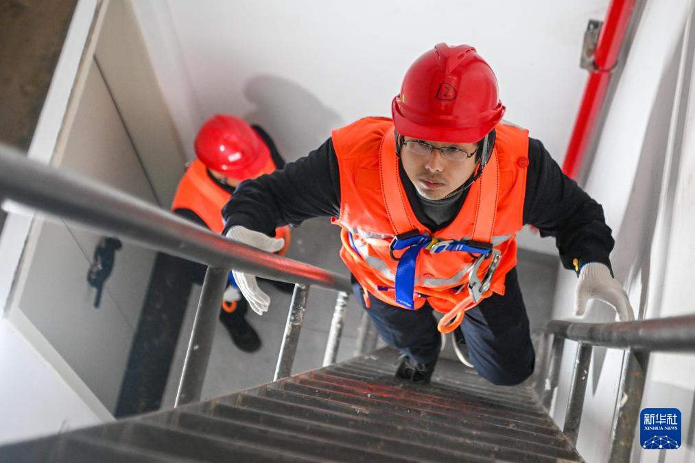 每次作业,他们都需背负工具,沿坡度近80度的爬梯攀至百米高的站房屋顶,在检修步道和马道上穿行,通过连续3至4天的接力作业完成全部检查,排除隐患,确保枢纽“筋骨”强健、运行无虞。