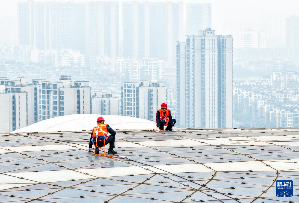 2月3日,鲁奇在重庆东站站房屋顶紧固螺栓。