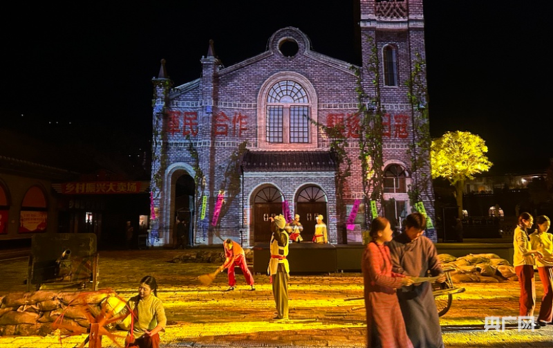 金延安景区灯光与投影营造的氛围将观众带回1935年的秋天(央广网记者 苏睿楠 摄)
