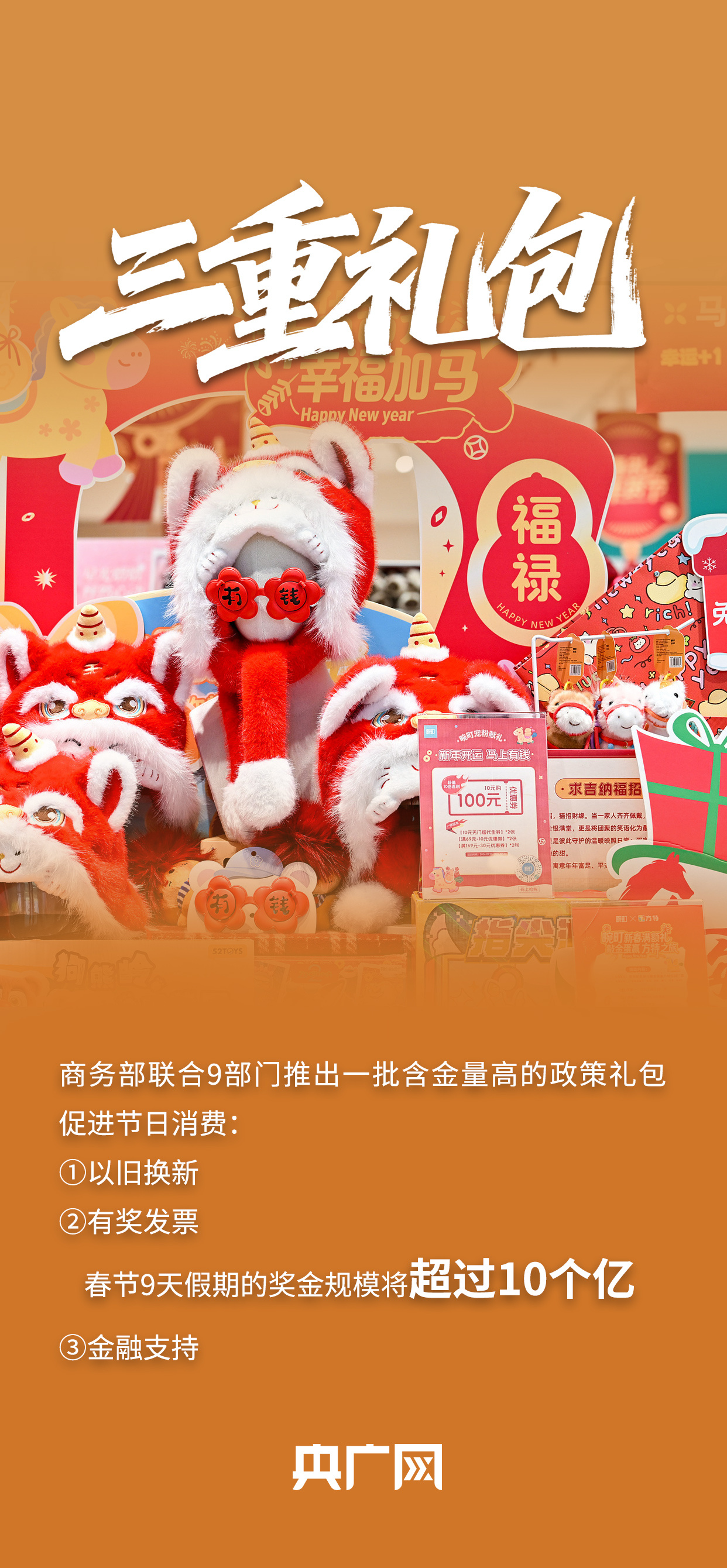 2月11日上午10时,国务院新闻办公室举行新闻发布会,相关负责人介绍2026“乐购新春”春节特别活动、保障春节市场供应有关情况,并答记者问。会上介绍,超20亿元“新春礼包”即将派送,春节9天假期有奖发票的奖金规模将超过10个亿……戳图!一组关键词读懂“乐购新春”。