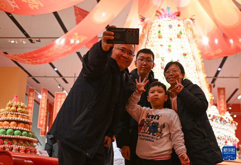 这是2月15日在“过年——丙午春节系列主题展”上拍摄的陕西非遗代表性项目澄城面花作品“大鼓枣山”。