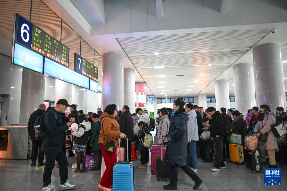 2月14日,即将乘坐K691/694次列车的旅客在呼和浩特站候车。