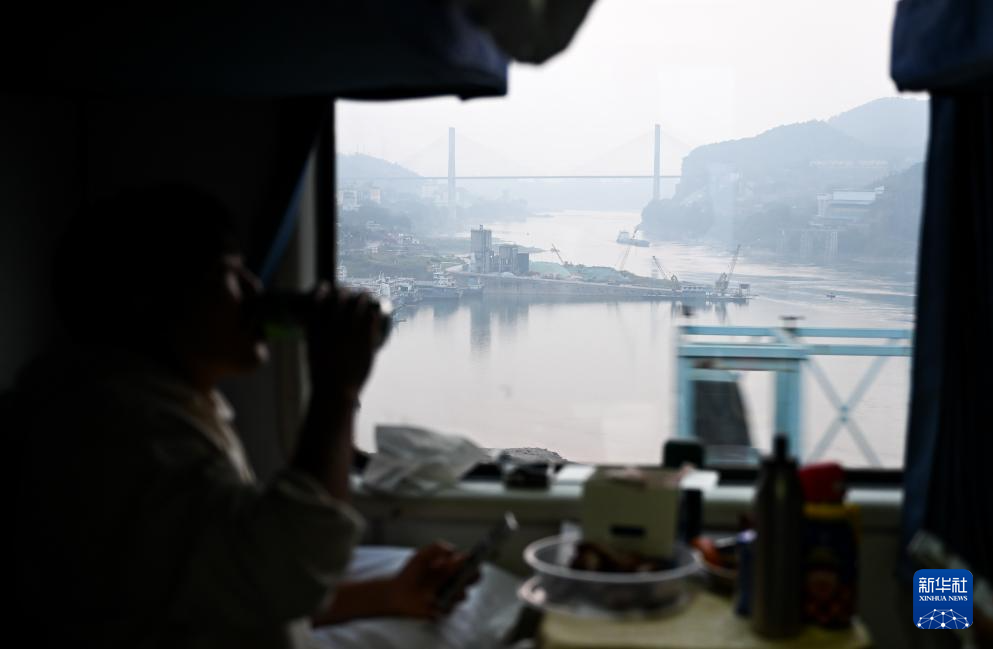 2月15日,K691/694次列车从重庆的一座长江桥梁上驶过。