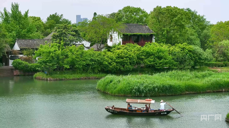杭州西溪国家湿地公园水道纵横,游客乘船如在画中游(央广网记者尚天宇 摄)