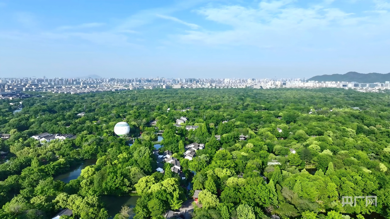 俯瞰杭州,绿色描绘出城市高质量发展的生动图景(央广网记者尚天宇 摄)
