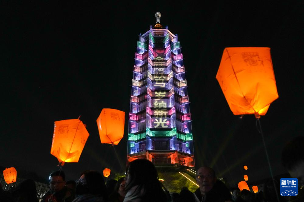 2月17日,南京大报恩塔点亮多彩灯光庆祝春节。