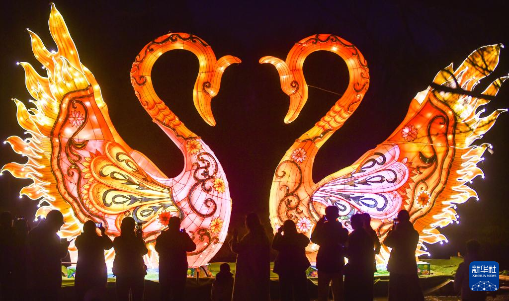 2月17日,游客在河南省洛阳市隋唐城遗址植物园欣赏“神都上元灯会”主题特色灯展。
