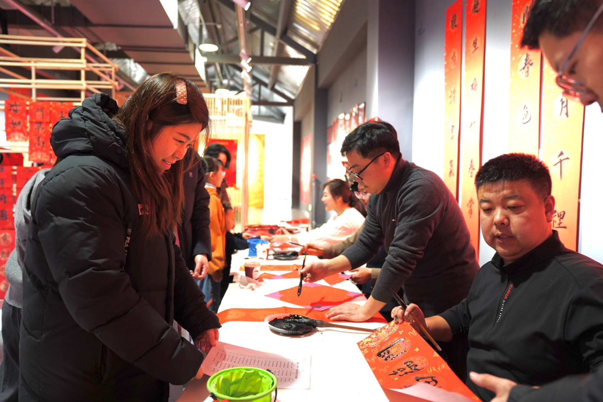 空·美术馆里墨香四溢,长春市青年书法家协会副主席郭洪日等四位书法家现场挥毫,“马到成功添锦绣”“喜盈大冬启新程”等春联跃然纸上,将新春祝福与大冬会期盼融入笔墨,市民们手捧墨香春联,争相与书法家、喜庆春联合影,一张张笑脸在镜头中绽放。累计百余份春联、福字免费发放,每一份都成了市民打卡收藏的“新春文化礼”。