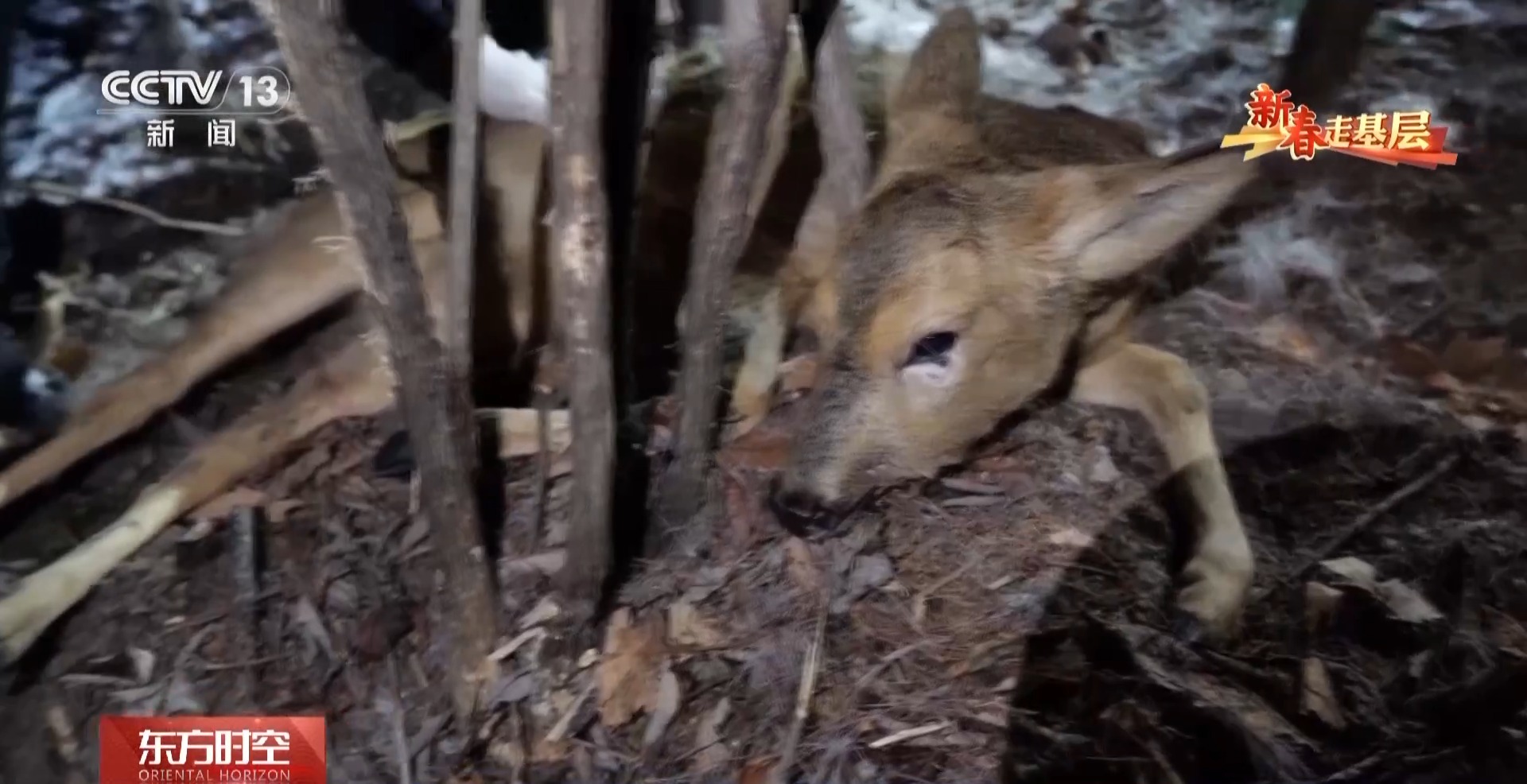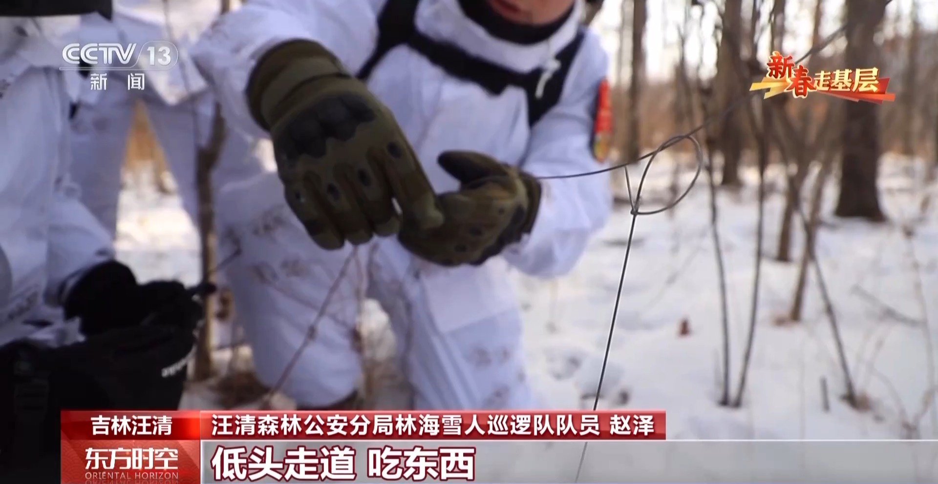 汪清森林公安分局林海雪人巡逻队队员赵泽:狍子在觅食的过程中,低头走路吃东西,头一伸进去之后,就往前或者往左右一拽。头、脖子就被勒住了。
