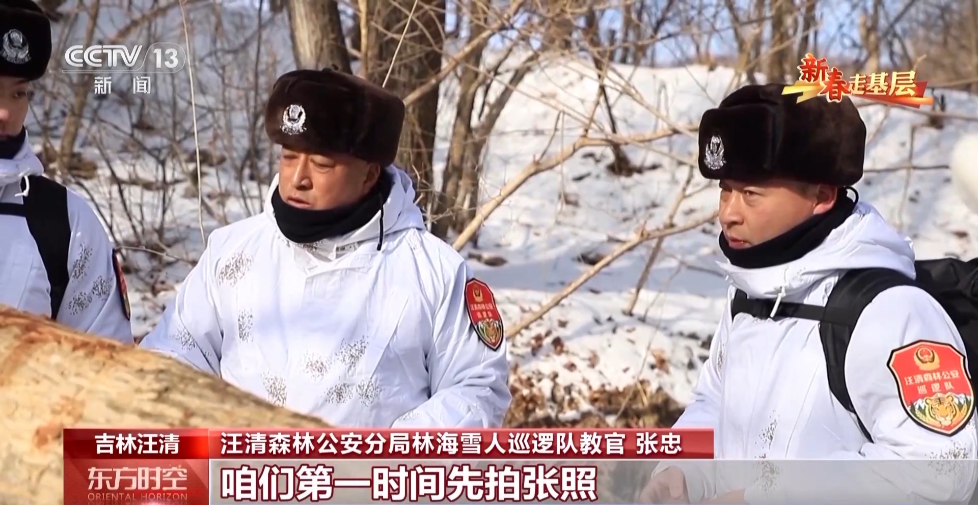 汪清森林公安分局林海雪人巡逻队队员赵子越:原地不动,然后往后撤。倒着往后撤,你不要转身背对着它往外跑。一点点往后撤,我们离它保持一定安全距离以后,我们再放一些鞭炮什么的。
