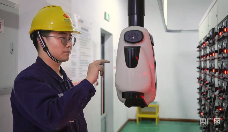 马小强通过操控机器人完成对光伏板组的日常检测(央广网记者贾海元 摄)