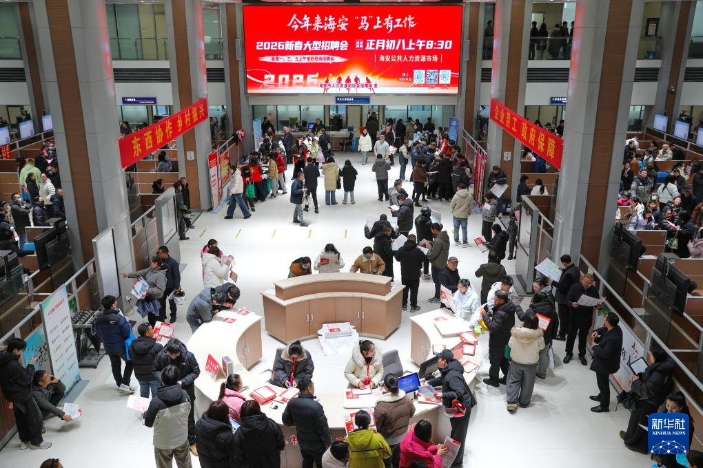 这是2月24日拍摄的江苏省海安市2026春风行动暨就业援助季专场招聘活动现场。