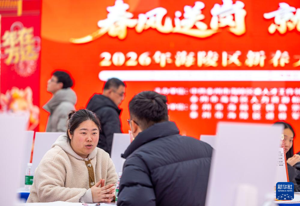 2月24日,在江苏省泰州市海陵区举办的2026年“春风送岗 就在海陵”专场招聘会上,求职者在活动现场咨询。