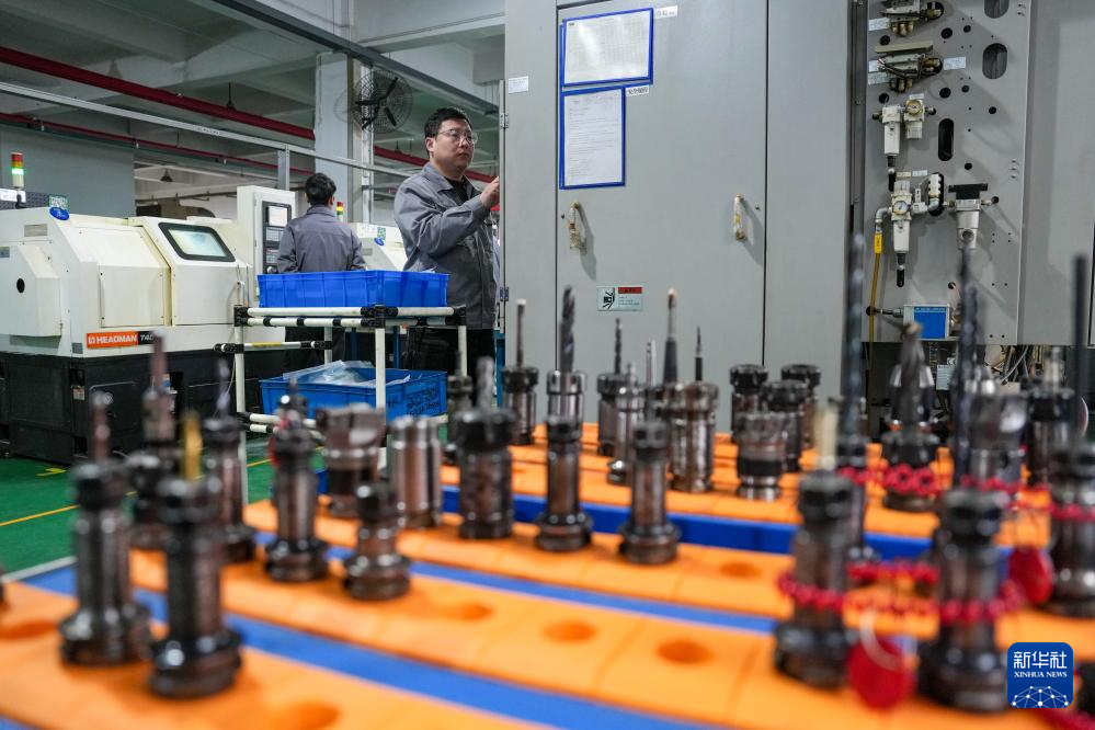 2月26日,在位于江苏省无锡市新吴区的江苏腾旋科技股份有限公司生产车间,工作人员在加工航空设备零件。