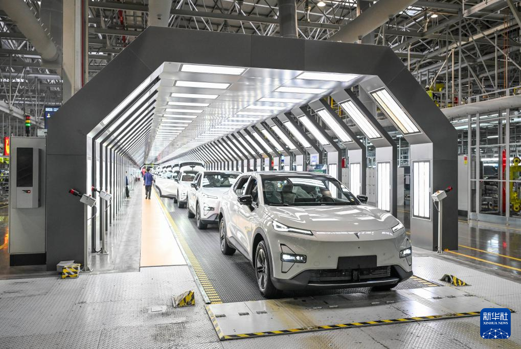 在位于重庆市渝北区的长安汽车数智工厂总装车间拍摄的即将下线的新能源汽车(2025年1月9日摄)。截至2025年底,全国新能源汽车保有量达4397万辆,比“十三五”末的492万辆增长近8倍。