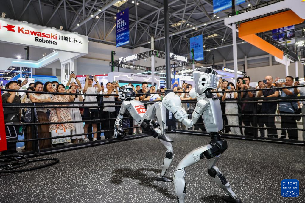 观众在2025世界智能产业博览会智能机器人展区观看机器人拳击赛(2025年9月5日摄)。