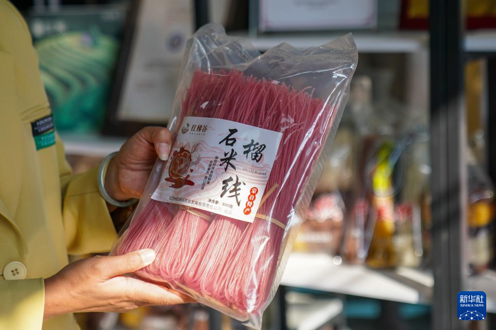 这是2月27日在蒙自市一家米线生产企业拍摄的特色石榴米线。