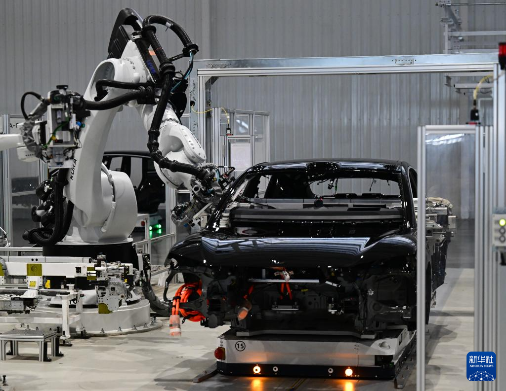 2025年7月1日在安徽省合肥市新桥智能电动汽车产业园蔚来第二工厂拍摄的新能源汽车生产线。