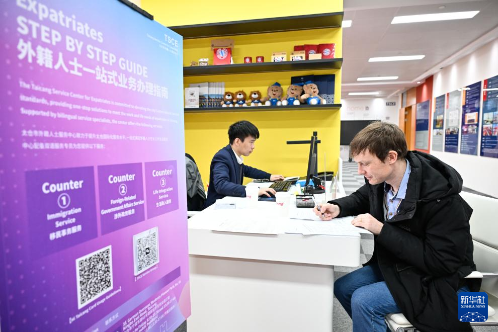 2026年2月25日,在江苏省太仓市外籍人士服务中心,一名德企员工在办理业务。