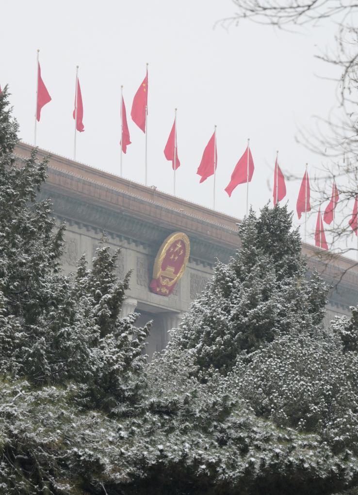 3月5日,十四届全国人大四次会议开幕会即将在北京人民大会堂举行。这是雪中的人民大会堂。