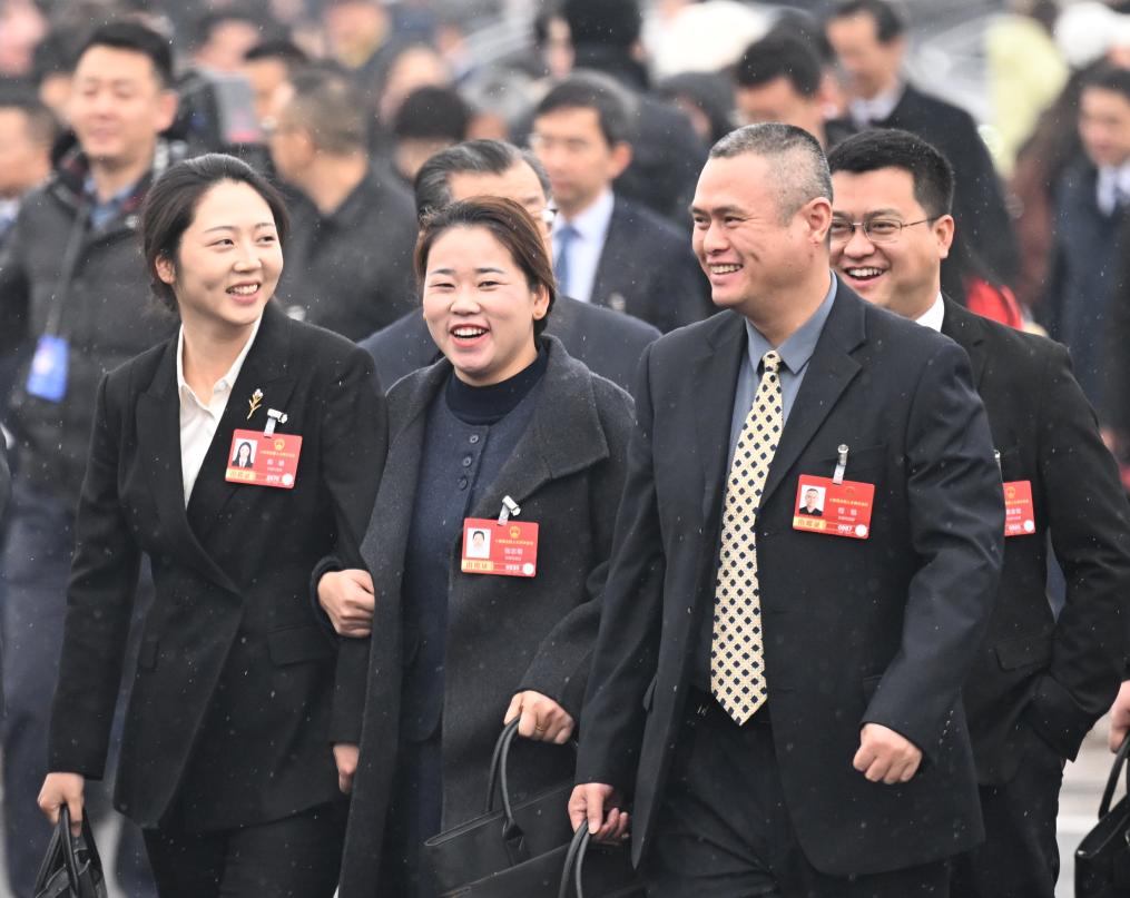 3月5日,十四届全国人大四次会议开幕会即将在北京人民大会堂举行。这是全国人大代表走向会场。