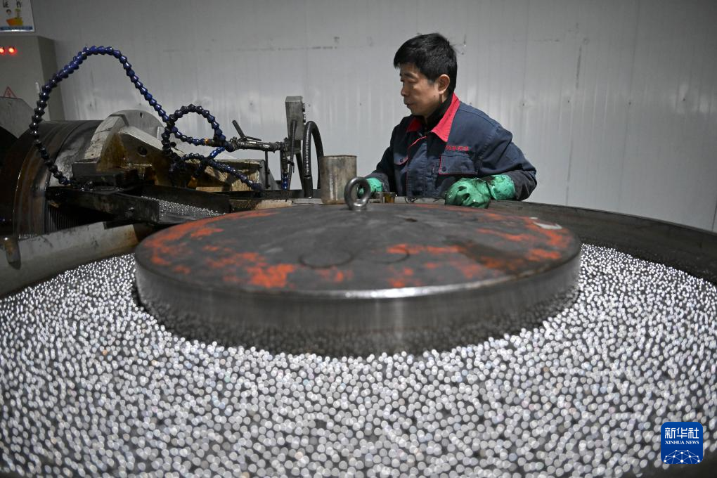 3月6日,在灵璧轴承产业园内的一家企业,工作人员在轴承钢球生产线上忙碌。