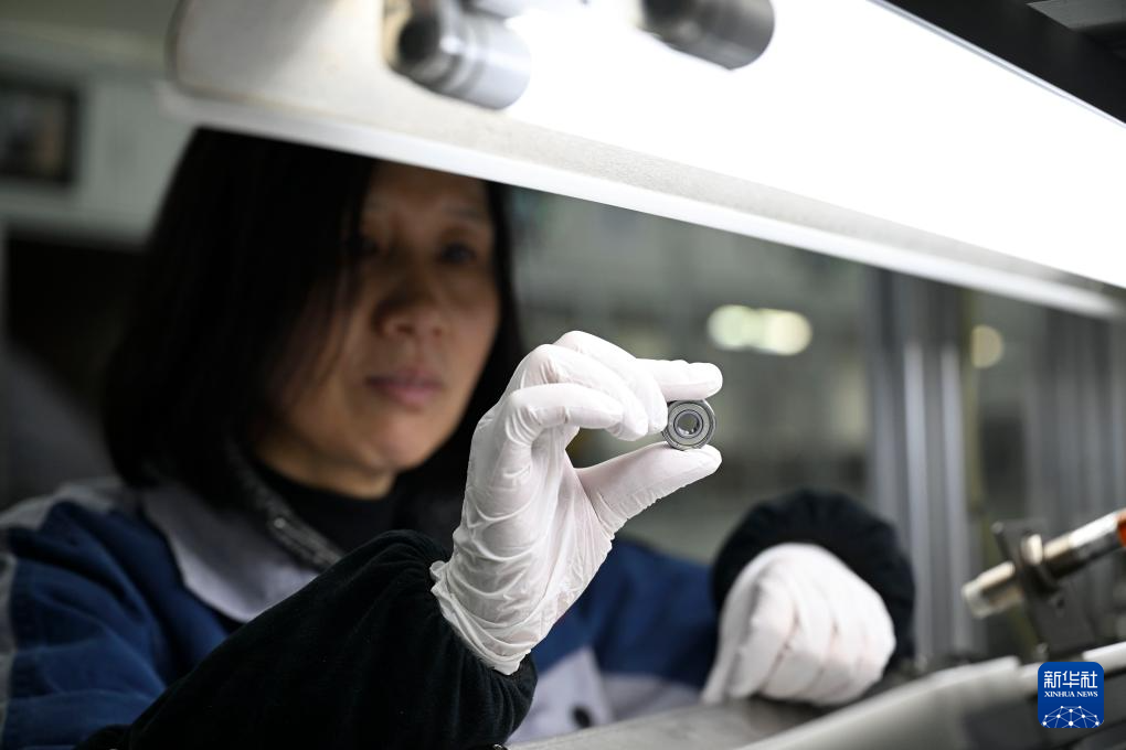 3月6日,在灵璧轴承产业园内的一家企业,工作人员对轴承产品进行人工抽检。
