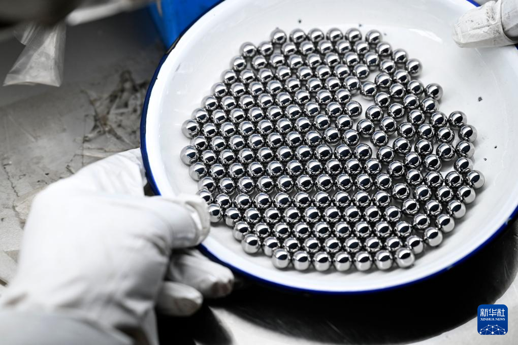 3月6日,在灵璧轴承产业园内的一家企业,工作人员对轴承钢球进行人工抽检。