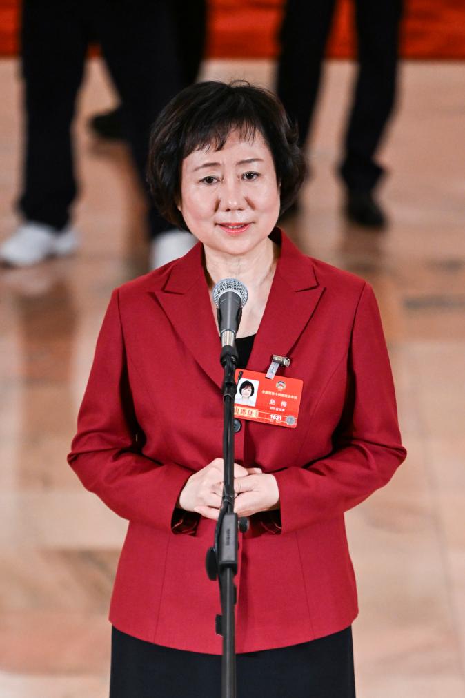 3月7日,全国政协十四届四次会议第二场“委员通道”集体采访活动在北京人民大会堂举行。这是全国政协委员赵梅接受媒体采访。