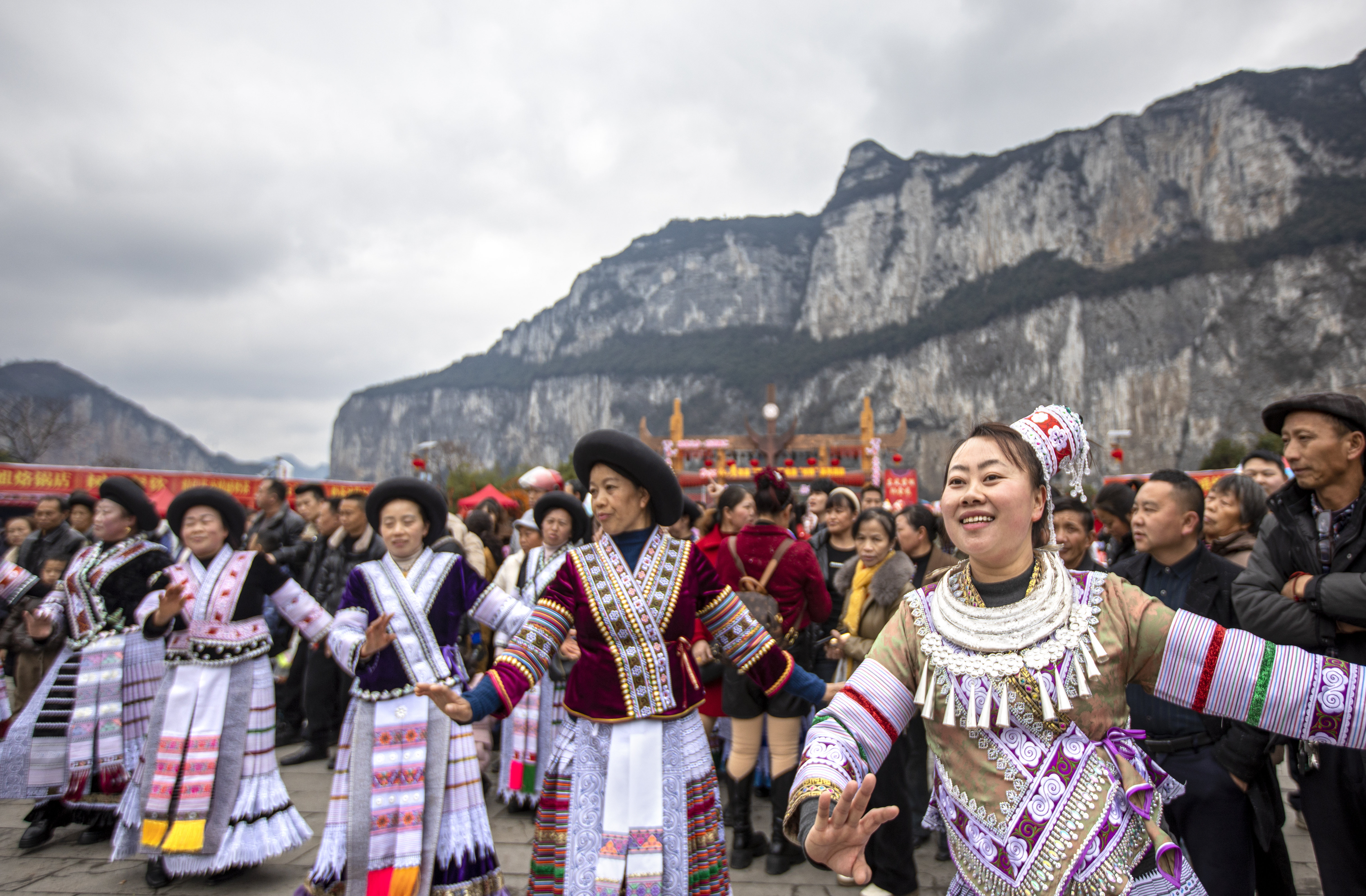 黔西市化屋村村民为游客表演苗家歌舞。翟培声摄