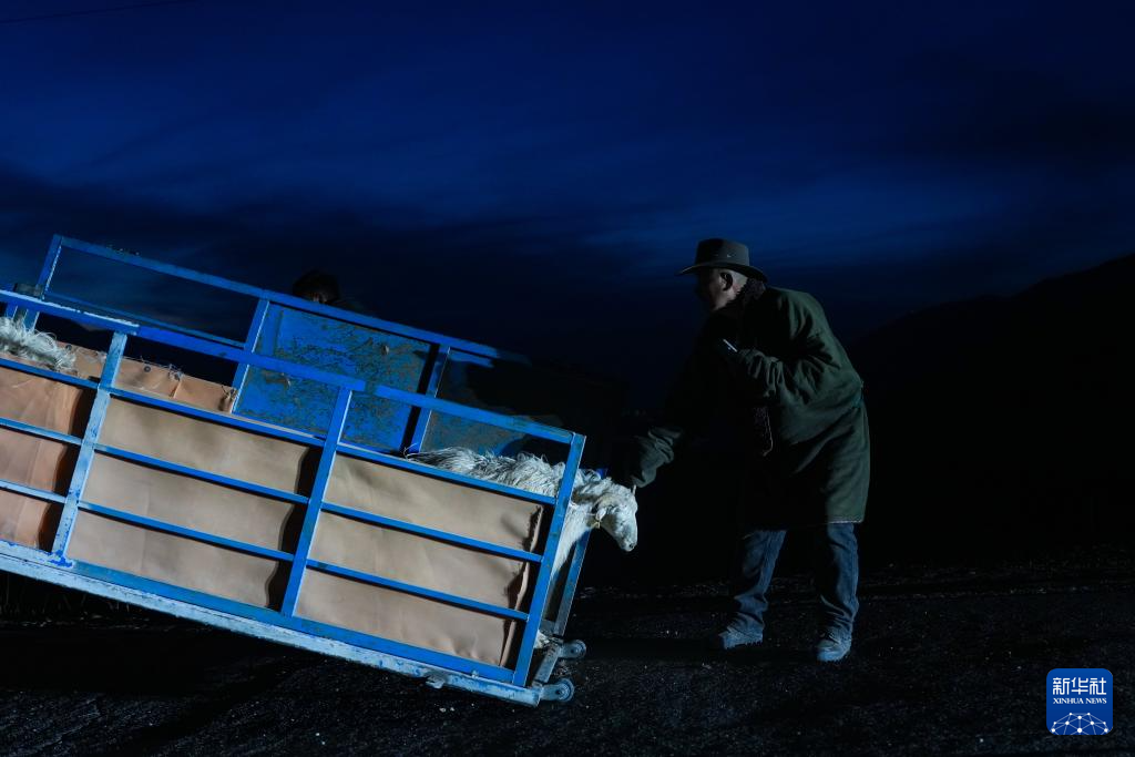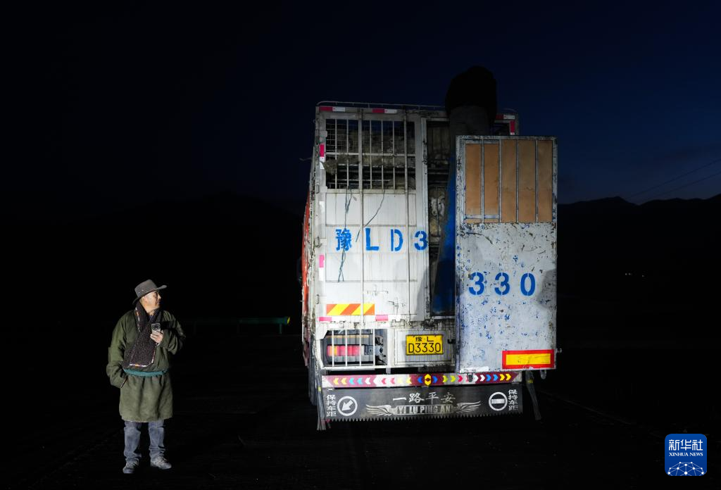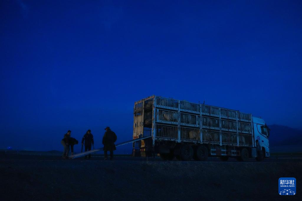 3月7日,从借牧点转运羊群的车辆回到青海省海北藏族自治州祁连县阿柔乡草大板村。